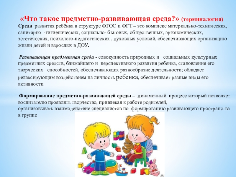 Слайд 4 «Что такое предметно-развивающая среда?» (терминалогия)
