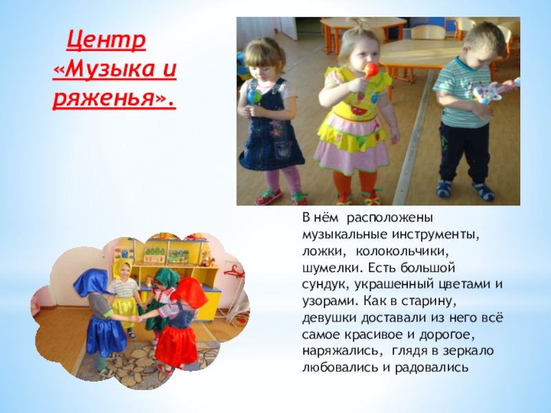 В нём расположены музыкальные инструменты, ложки, колокольчики, шумелки.