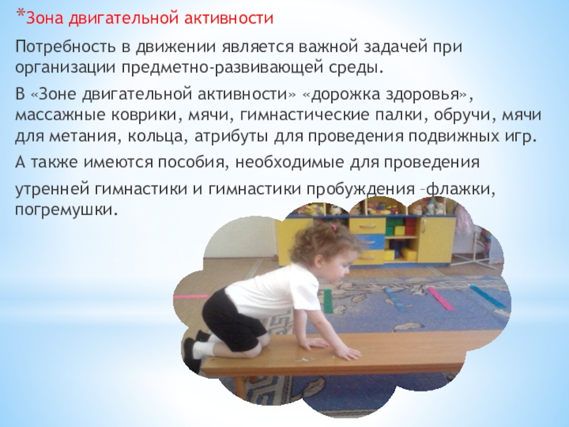 Потребность в движении является важной задачей при организации предметно-развивающей