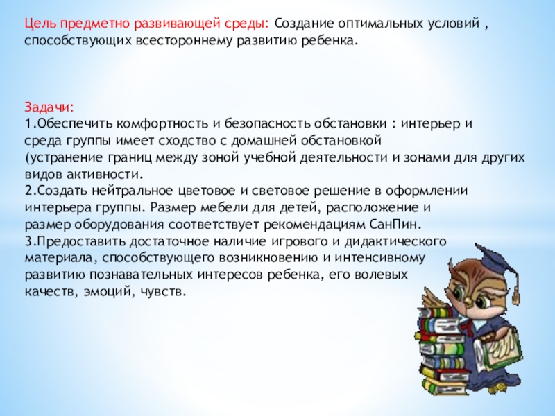 мобильным. Правильно организованная предметно-развивающая среда, помогает взрослому обеспечить гармоничное развитие ребенка,