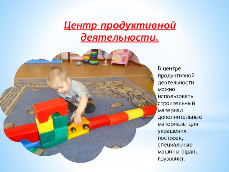 Слайд 16В центре продуктивной деятельности можно использовать строительный материал дополнительные материалы для