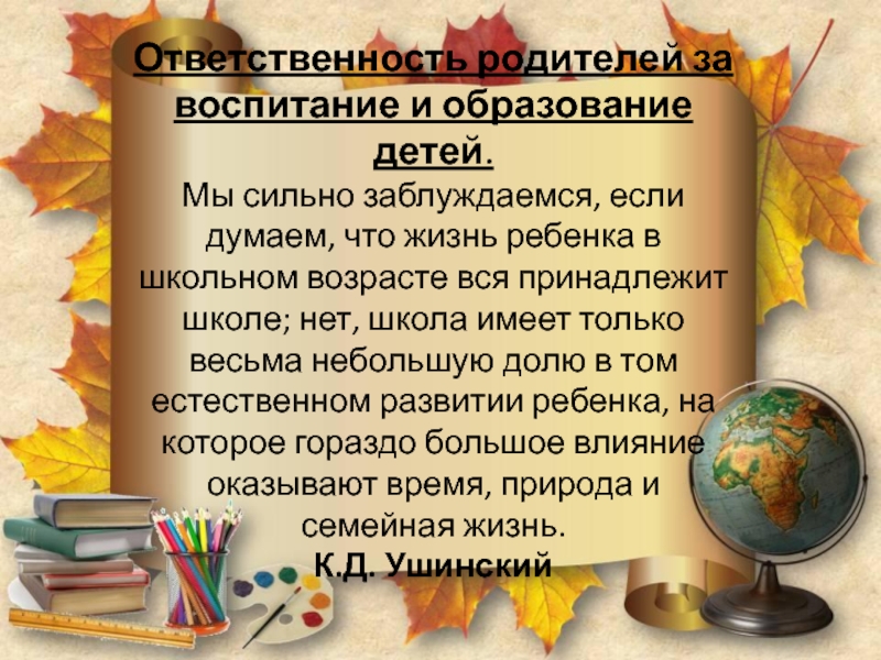Слайд 4Ответственность родителей за воспитание и образование детей.