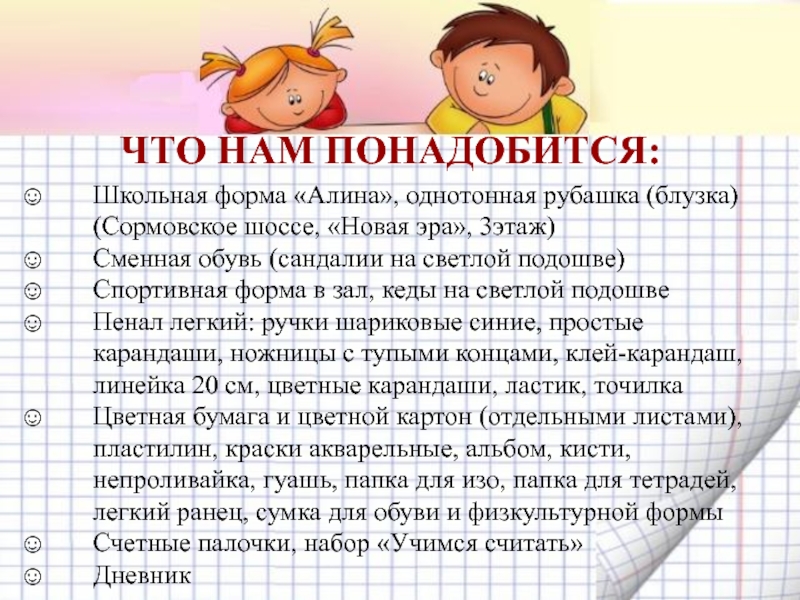 в 1 класс