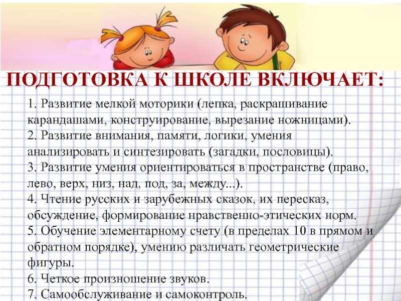 Подготовка к школе включает: