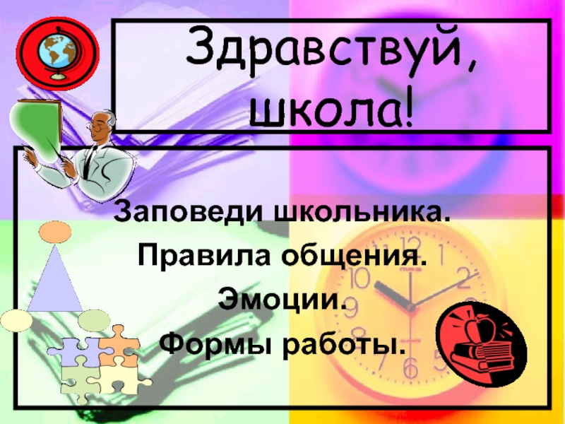 Здравствуй, школа! Заповеди школьника.Правила общения.Эмоции.Формы работы.