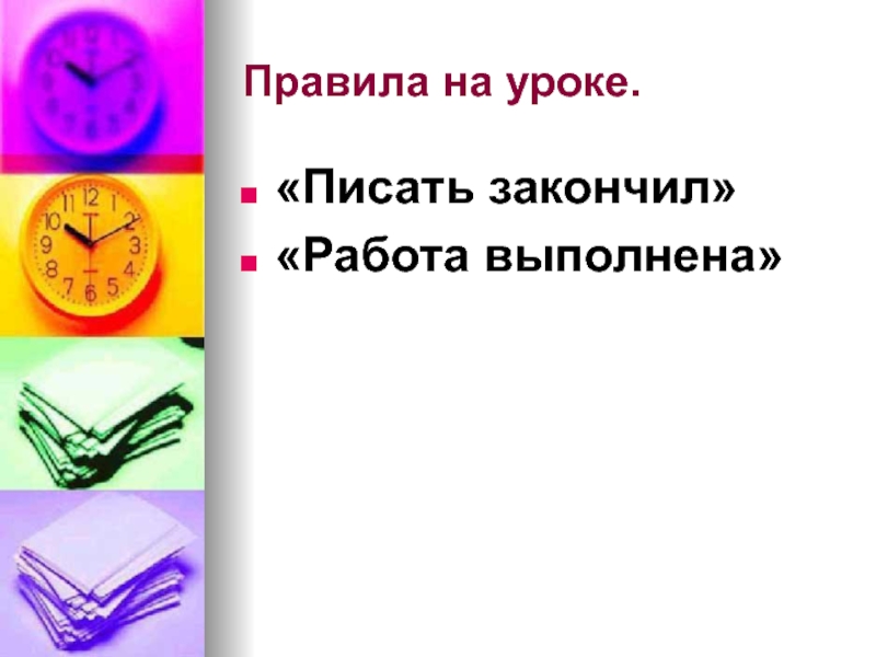 Правила на уроке.«Писать закончил»«Работа выполнена»