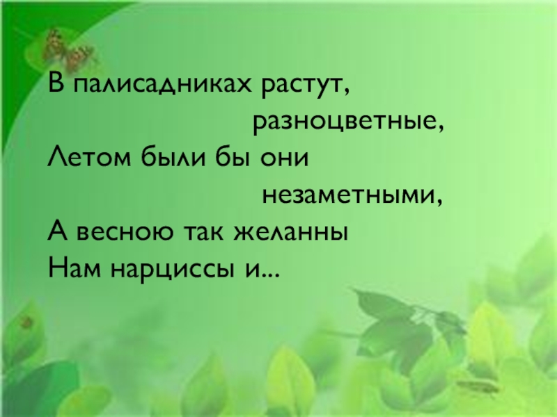 были бы они                          незаметными, А весною так желанны Нам нарциссы и...