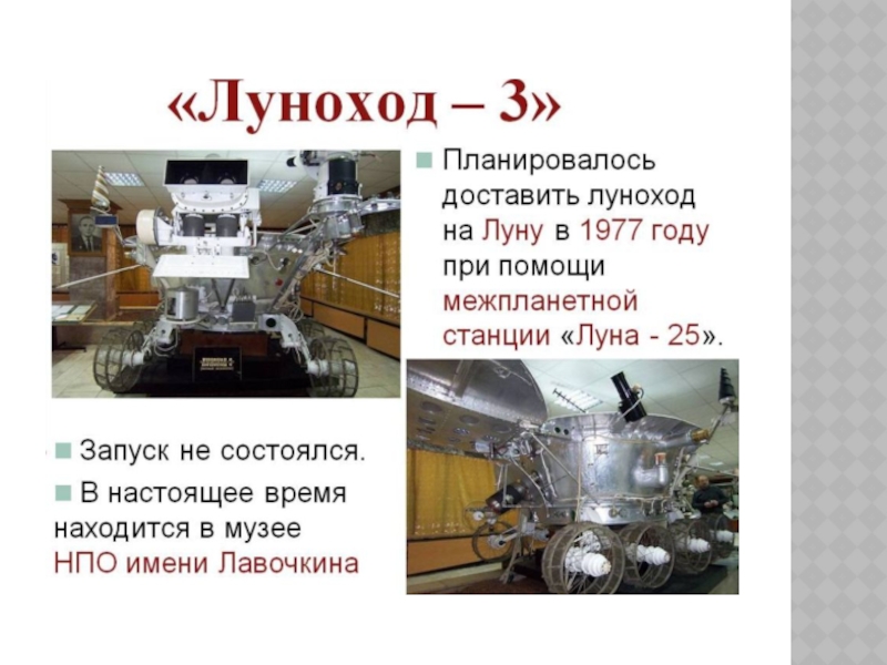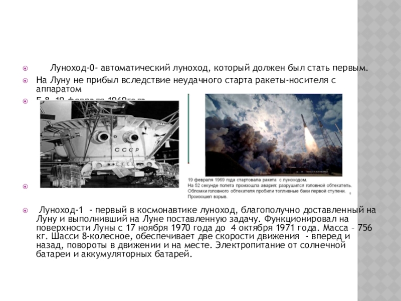 Слайд 3 Луноход-0- автоматический луноход, который должен был стать первым.