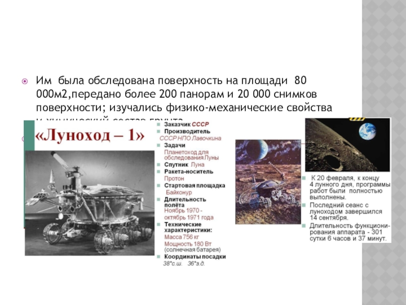 и 20 000 снимков поверхности; изучались физико-механические свойства и химический состав грунта.