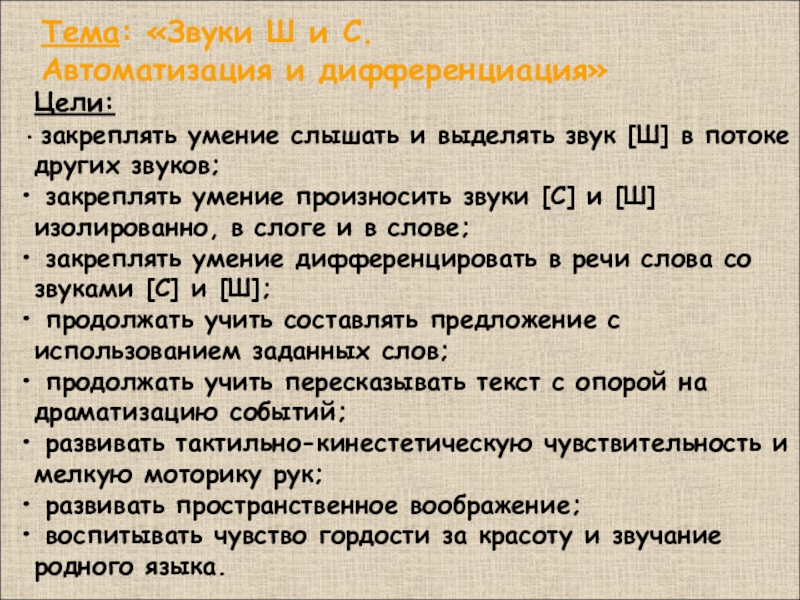 по автоматизации и дифференциации звуков Ш и С