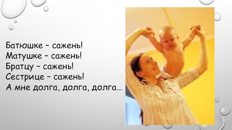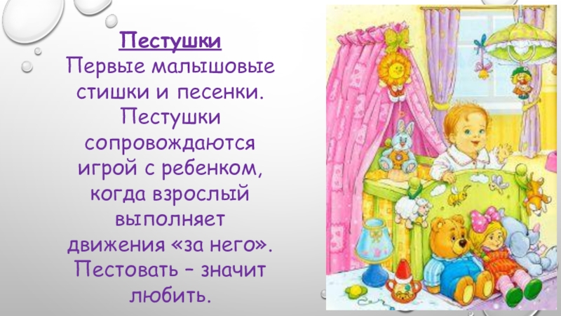 взрослый выполняет движения «за него». Пестовать – значит любить.