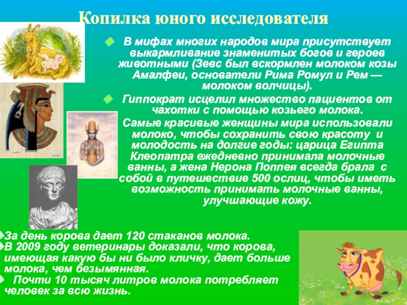 Испокон века люди высоко ценили целебные свойства молока. Они называли его «соком жизни», «эликсиром жизни».