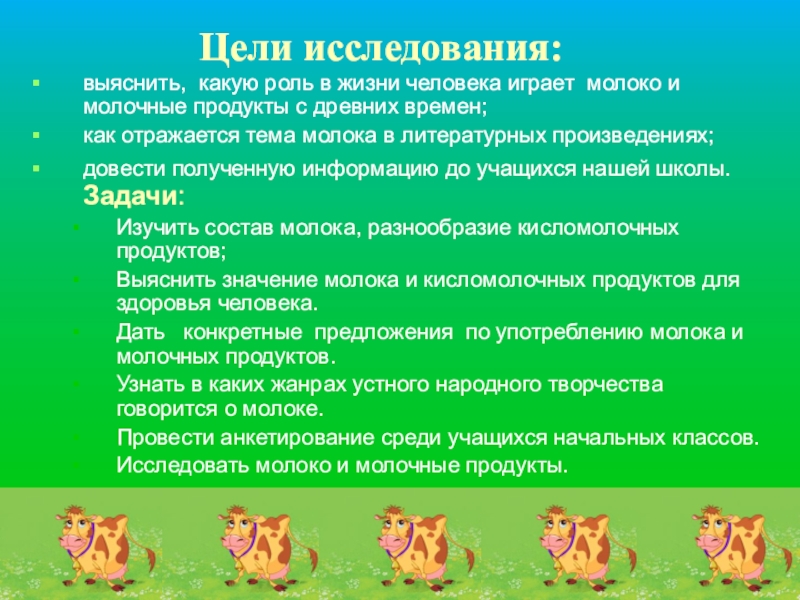 выяснить, какую роль в жизни человека играет молоко и молочные