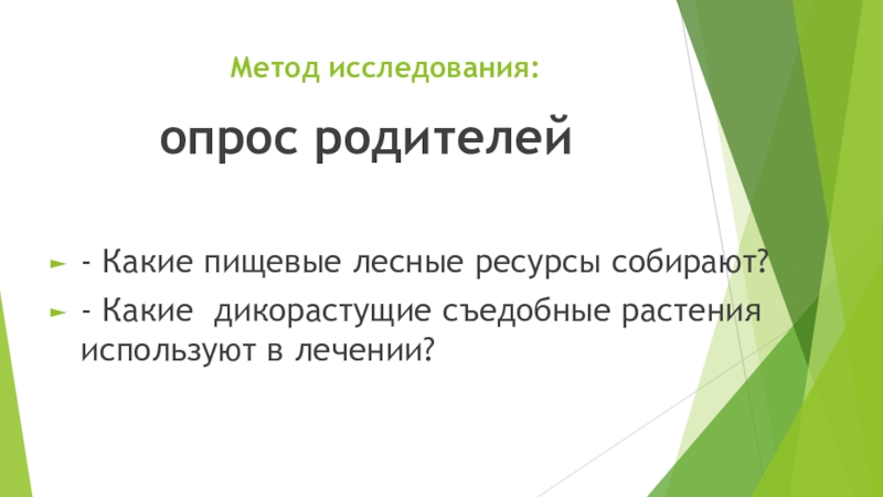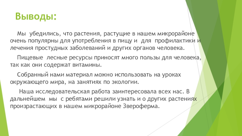 Пищевые лесные ресурсы, которые используются в питании в лечебных целях у населения нашего микрорайона.