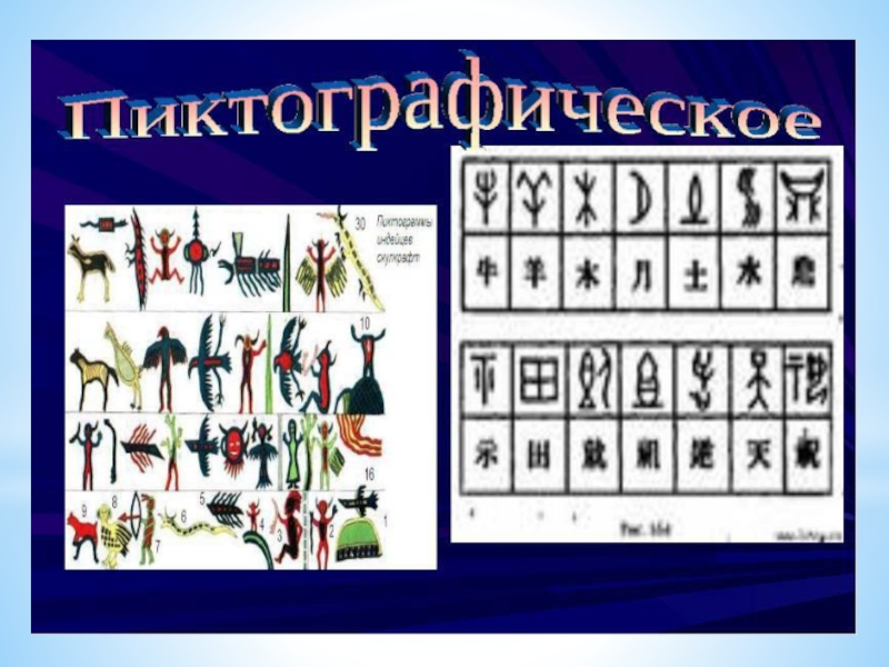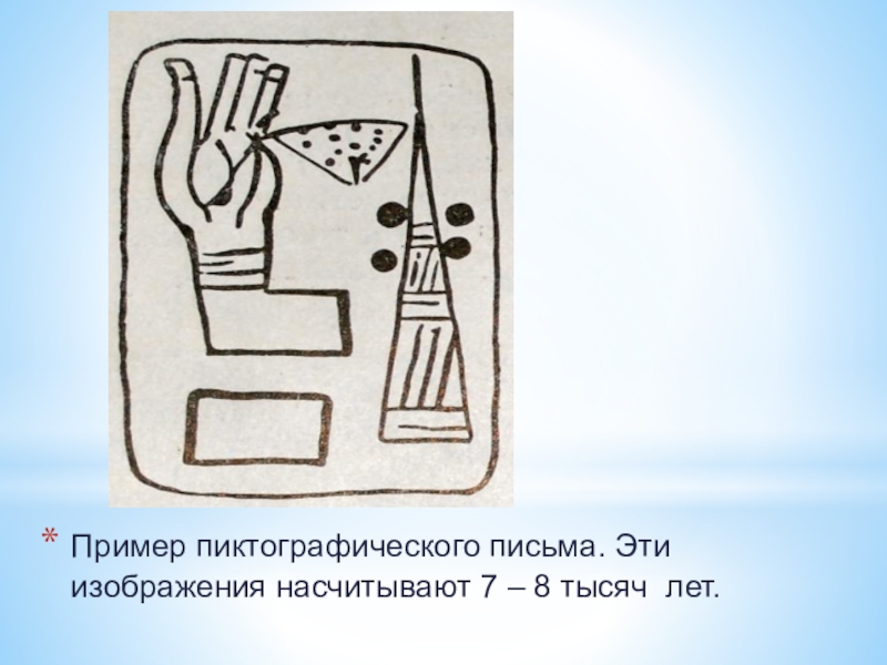 Слайд 15Пример пиктографического письма. Эти изображения насчитывают 7 – 8 тысяч лет.
