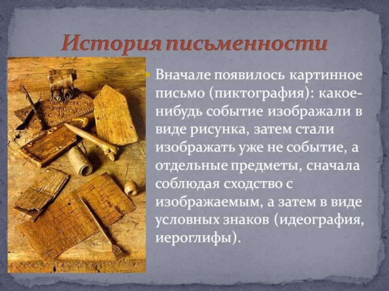 категории ГБОУ СОШ № 317 Адмиралтейского района г. Санкт-Петербурга Арсентьевой Еленой Леонидовной. Источники:http://edu.znate.ru/docs/5451/index-83412.html; mages.yandex.ru/yandsearch?source=wiz&uinfo=sw-1349-sh-569-fw-1124-fh-448-pd-1&p=1&text=пиктография первая письменность&noreask=1&pos=53&rpt=simage&lr=2&img_url=http%3A%2F%2Fedu.znate.ru%2Ftw_files2%2Furls_55%2F84%2Fd-83412%2Fimg5.jpg; http://uch.znate.ru/docs/3316/index-4351-1.html