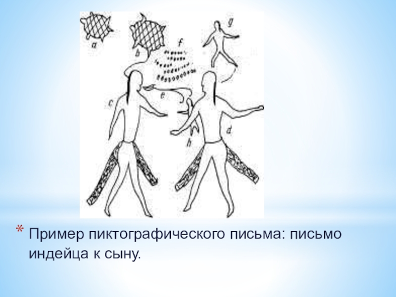 Слайд 16Пример пиктографического письма: письмо индейца к сыну.