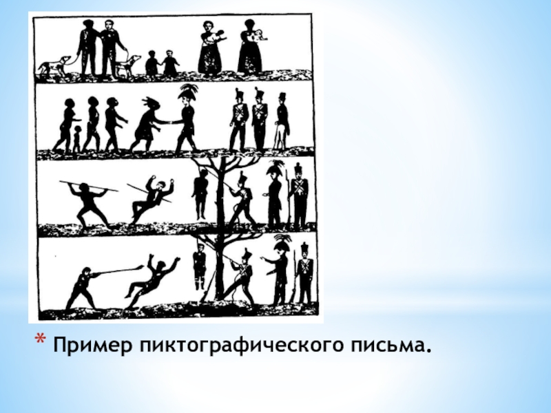 Слайд 14Пример пиктографического письма народов первобытной культуры