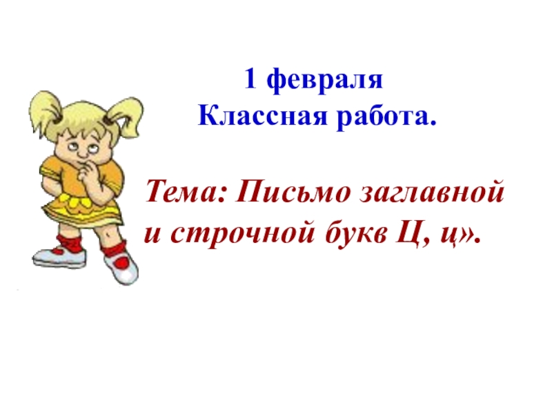 1 февраля Классная работа. Тема: Письмо заглавной и строчной букв Ц, ц».
