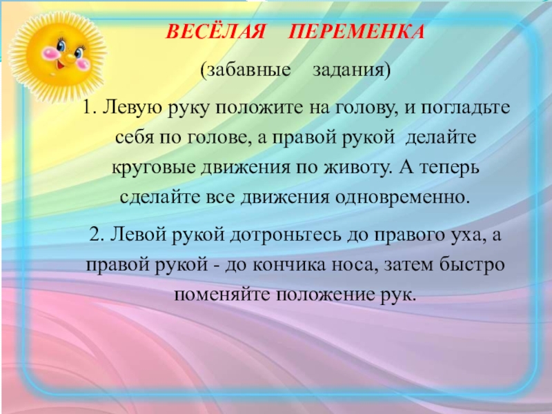 Слайд 9ВЕСЁЛАЯ ПЕРЕМЕНКА