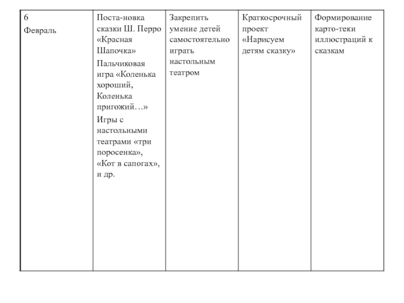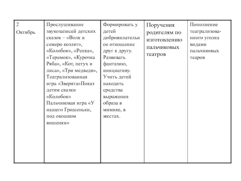 • помогать робким и застенчивым детям включаться в театрализованную игру.