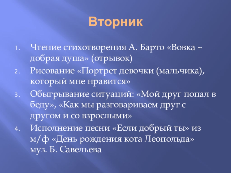 Песня «Все мы делим пополам» (сл. М. Пляцковского, муз. В. Шаинского).