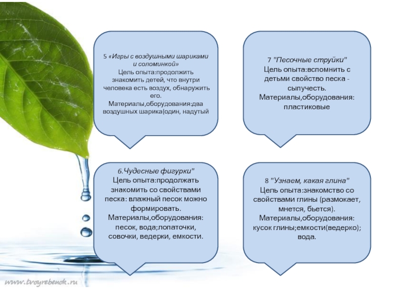 Цель опыта:выявлять свойства воды: имеет вес, прозрачная, льется.
