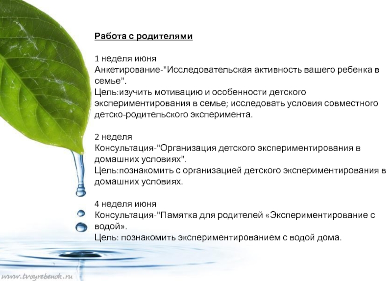Консультация-"Памятка для родителей «Экспериментирование с водой».