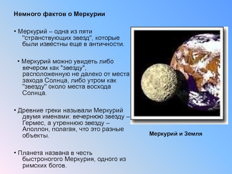 Меркурий и Земля