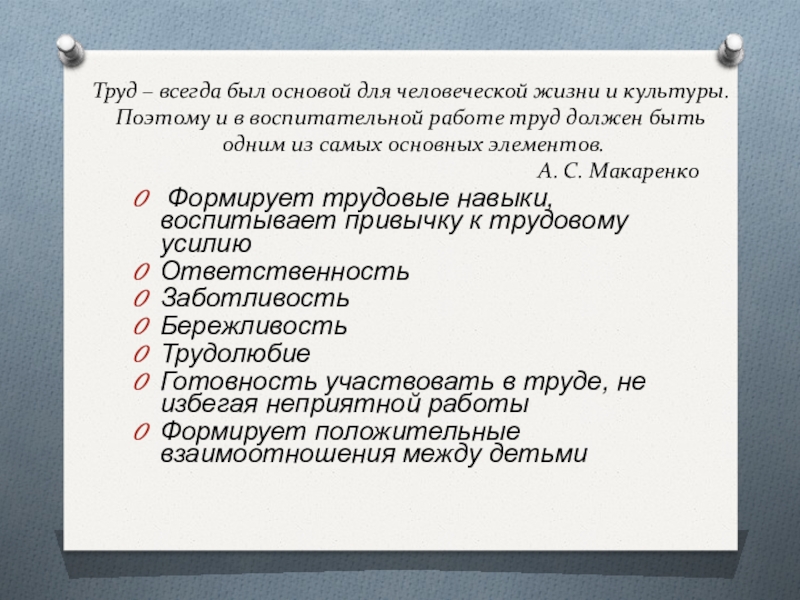 Формирует трудовые навыки, воспитывает привычку к трудовому усилию