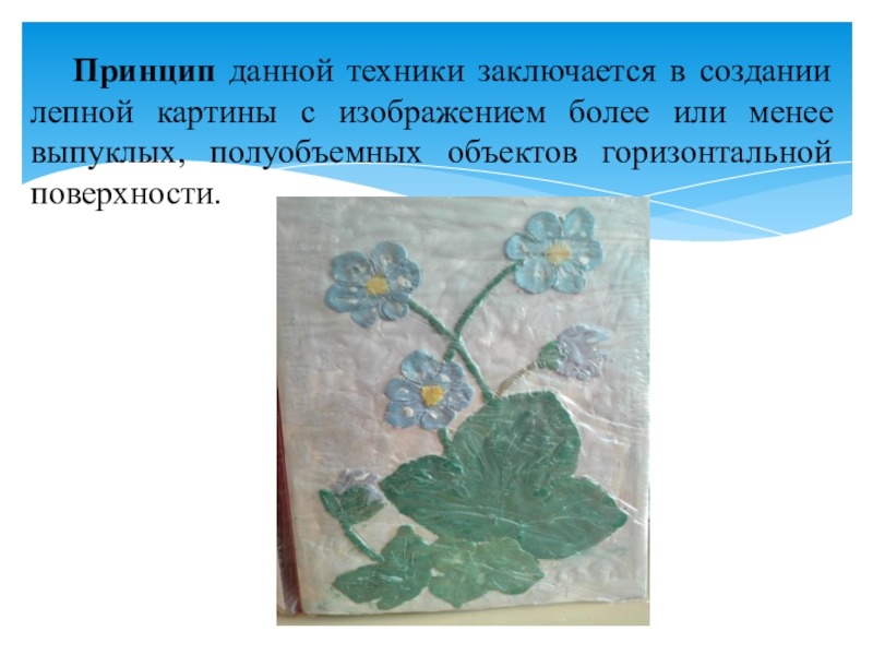 Слайд 3Принцип данной техники заключается в создании лепной картины с изображением более
