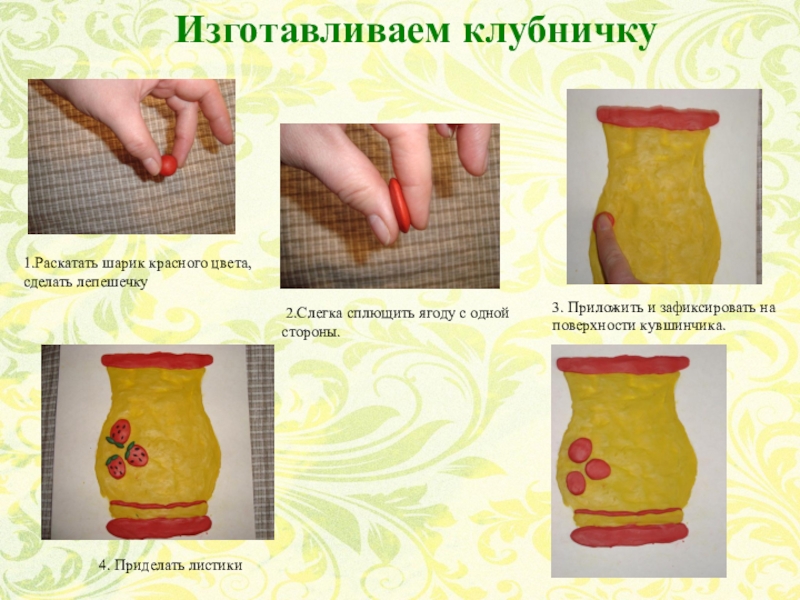 3. Приложить и зафиксировать на поверхности кувшинчика.