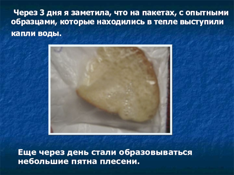 Еще через день стали образовываться небольшие пятна плесени.