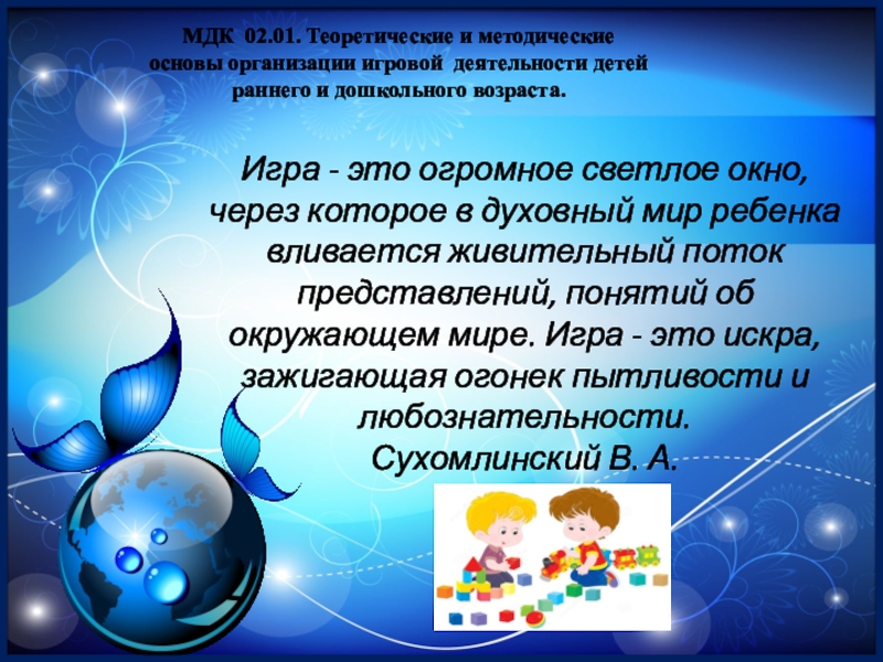 Слайд 3МДК 02.01. Теоретические и методические основы организации игровой деятельности детей раннего