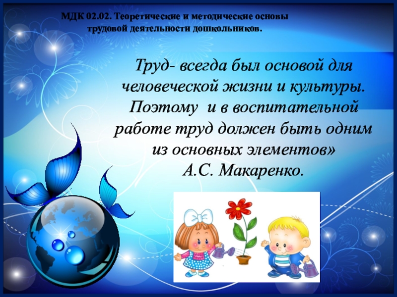 Слайд 9МДК 02.02. Теоретические и методические основы трудовой деятельности дошкольников.