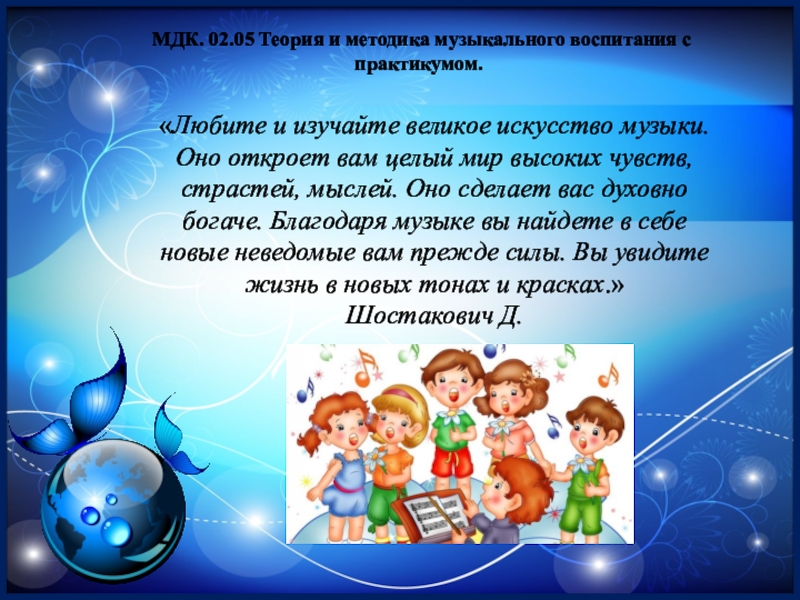 Слайд 20МДК. 02.05 Теория и методика музыкального воспитания с практикумом.