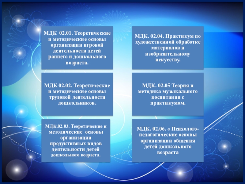 Слайд 12МДК.02.03. Теоретические и методические основы организации продуктивных видов деятельности детей дошкольного