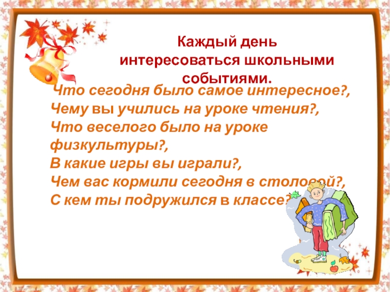 Оставьте за порогом школы ваши проблемы и плохое настроение.