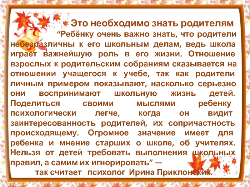 Родители, которые общаются между собой и знакомы с одноклассниками ребенка, всегда достигнут больших успехов в воспитании своих детей, будут лучше ориентироваться в школьных проблемах.