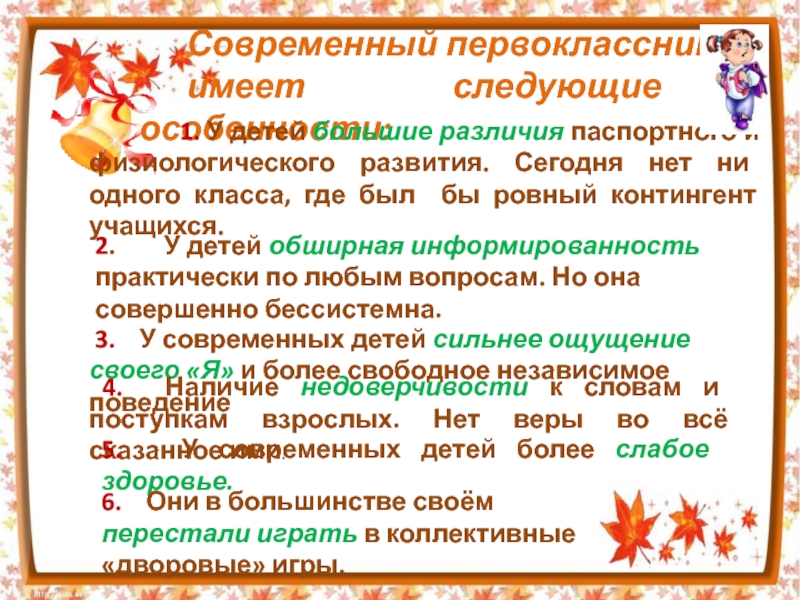 3. У современных детей сильнее ощущение своего «Я» и более свободное независимое поведение