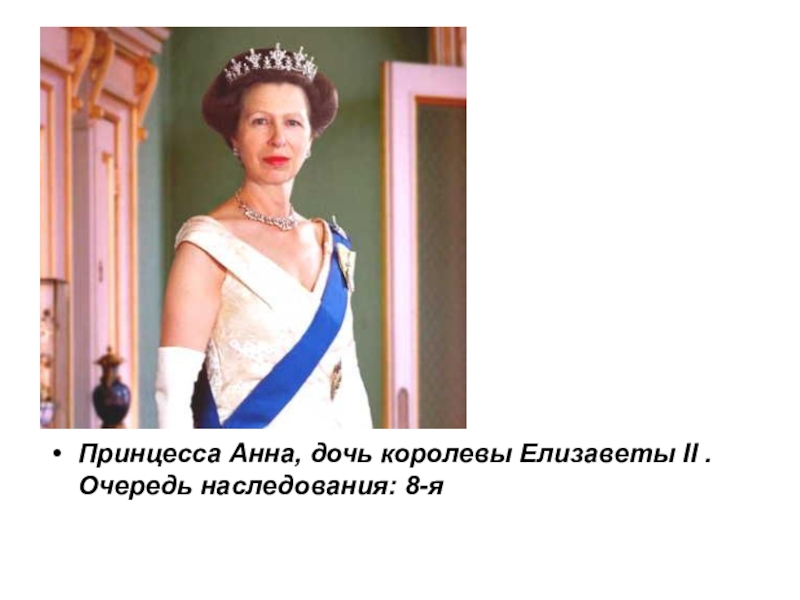 Принцесса Анна, дочь королевы Елизаветы II . Очередь наследования: 8-я