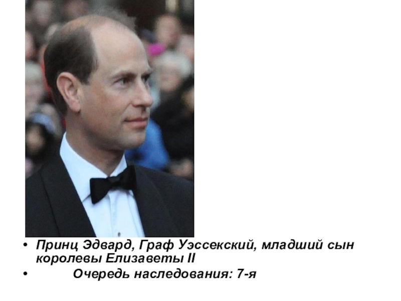Принц Эдвард, Граф Уэссекский, младший сын королевы Елизаветы II     Очередь наследования: 7-я
