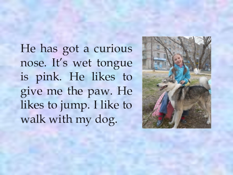 Слайд 4He has got a curious nose. It’s wet tongue is pink.