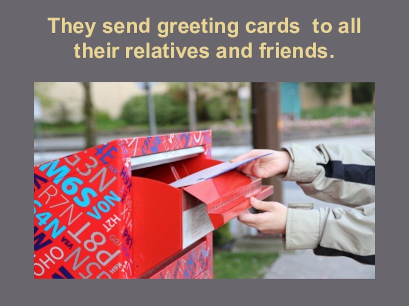 Слайд 5They send greeting cards to all their relatives and friends.
