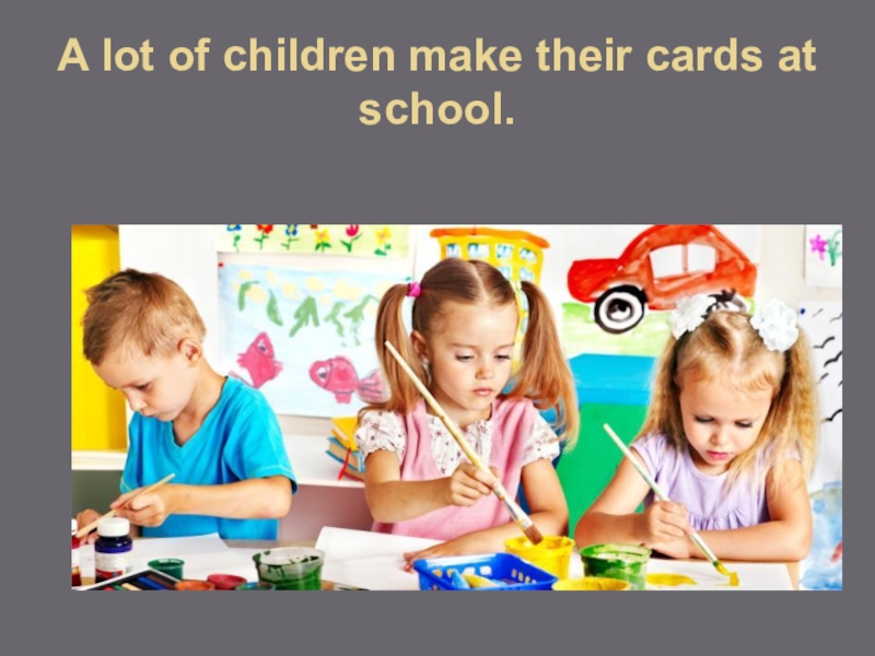 Слайд 7A lot of children make their cards at school.