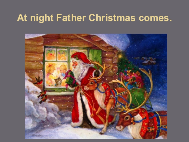Слайд 12At night Father Christmas comes.