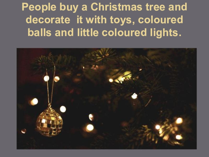 Слайд 8People buy a Christmas tree and decorate it with toys, coloured