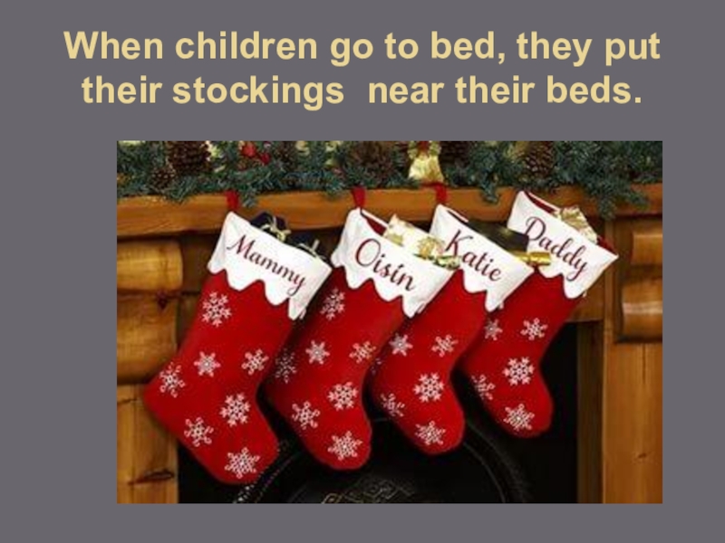 Слайд 11When children go to bed, they put their stockings near their