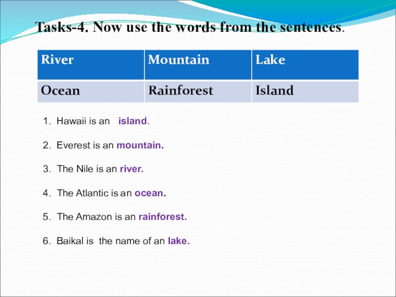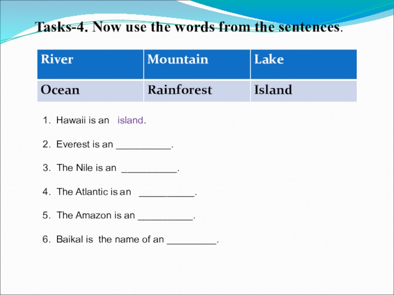 Tasks-4. Now use the words from the sentences.      1. Hawaii is an