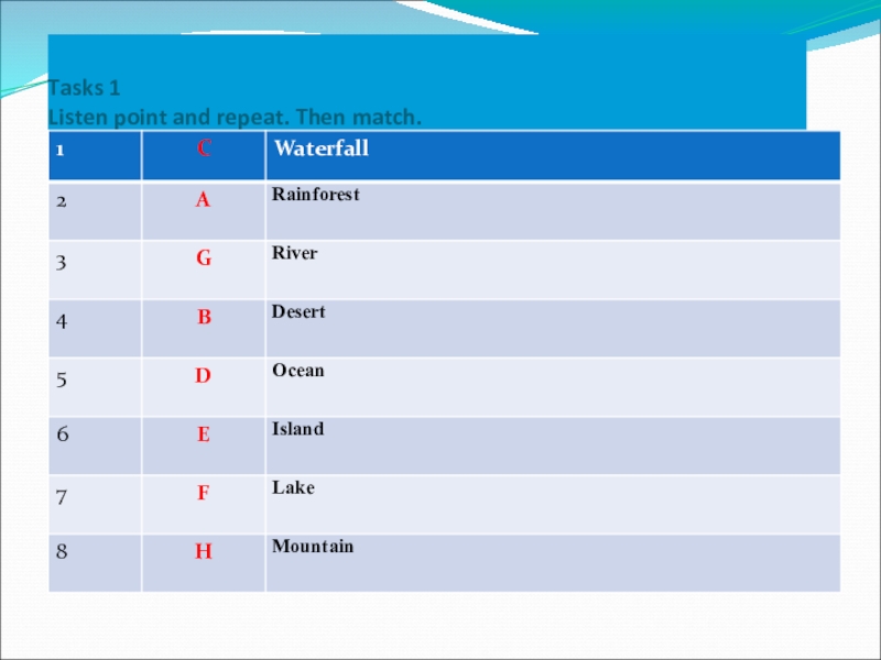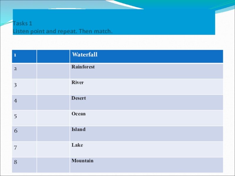Слайд 10Tasks 1 Listen point and repeat. Then match.